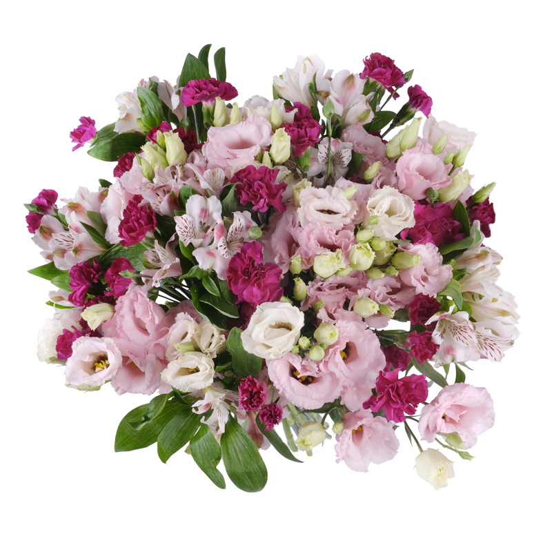 Połączenie delikatnej eustomy, lekkiej alstromerii i mocniejszego goździka czyni bukiet Miłosny List subtelnym wyznaniem w kwiatowej formie.